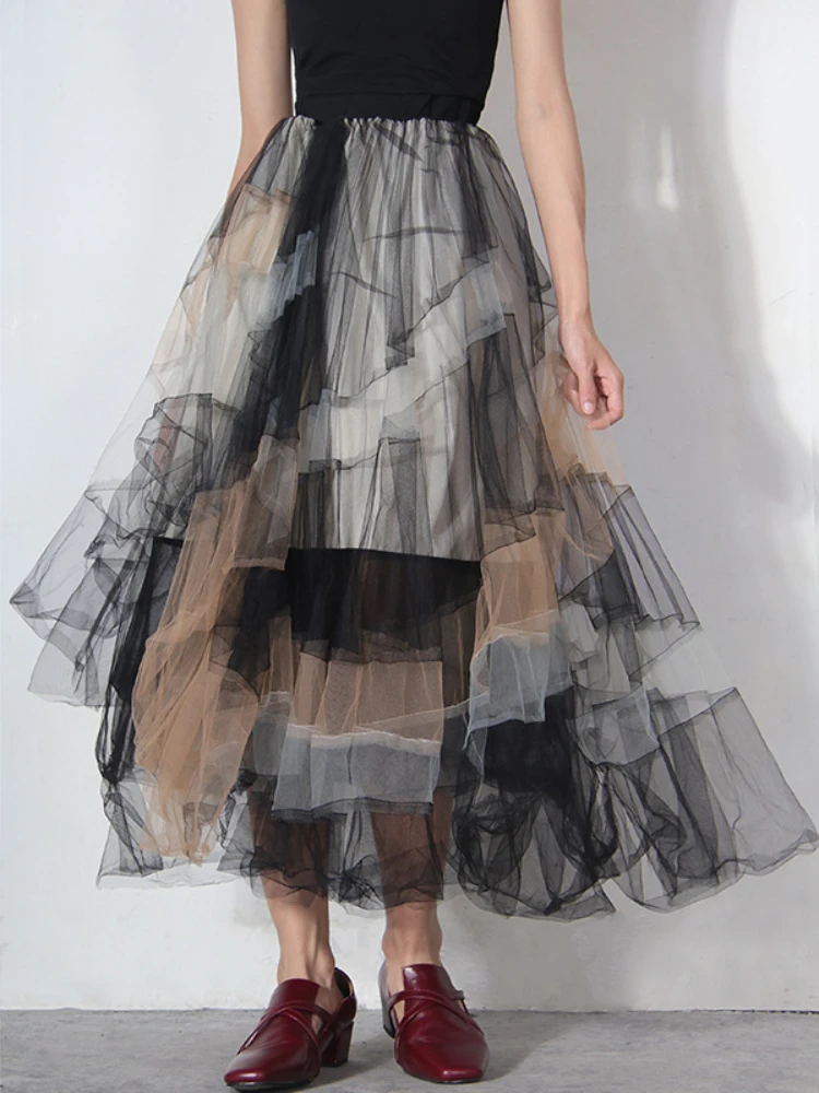 Multi Layer Stitching Gradient Color Blocking Skirt Irregular Mesh Half Skirt Cake Hem Puffy High Quality Fashion Women Dress Skirts Aliexpress